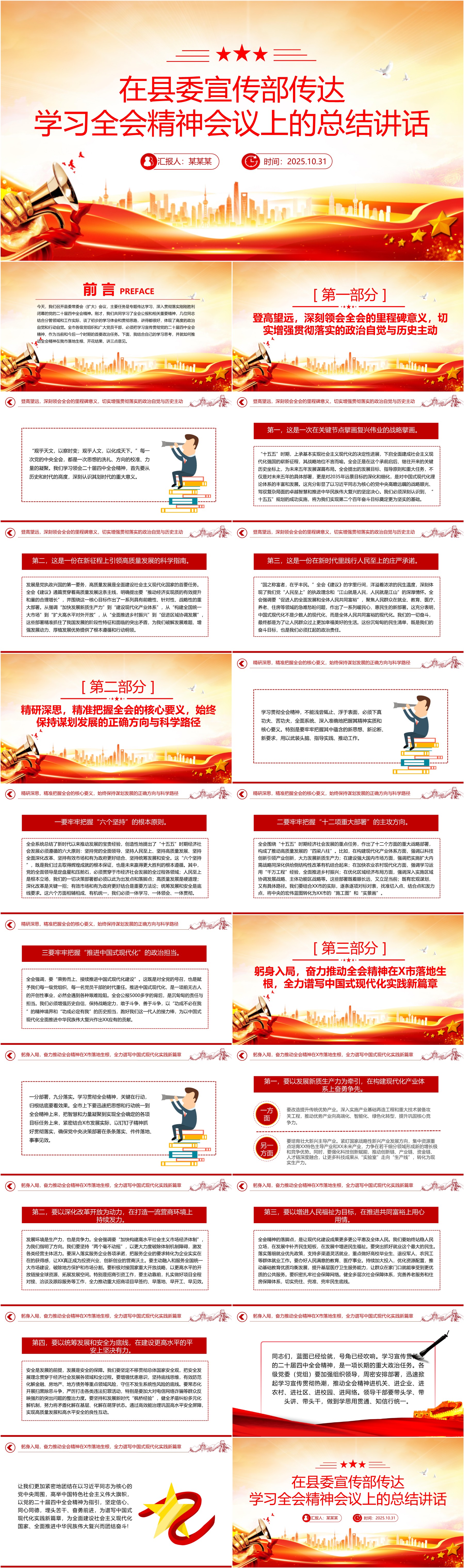 简洁大气在县委宣传部传达学习全会精神会议上的总结讲话PPT模板(ppt+讲稿)