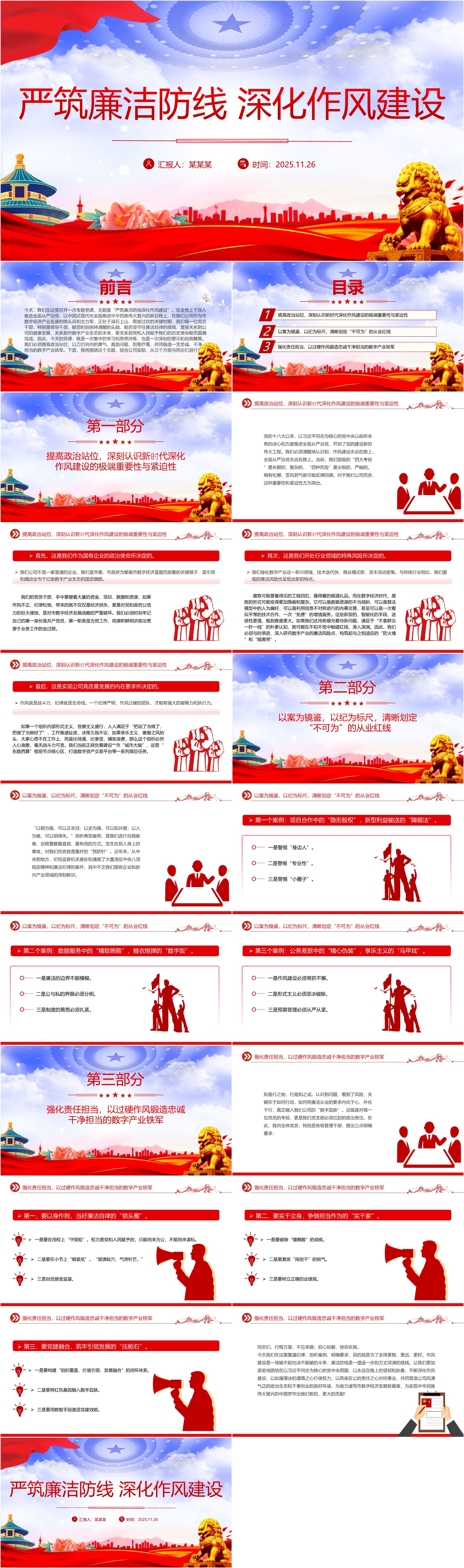 红色简洁严筑廉洁防线深化作风建设PPT廉政X课(ppt+讲稿)