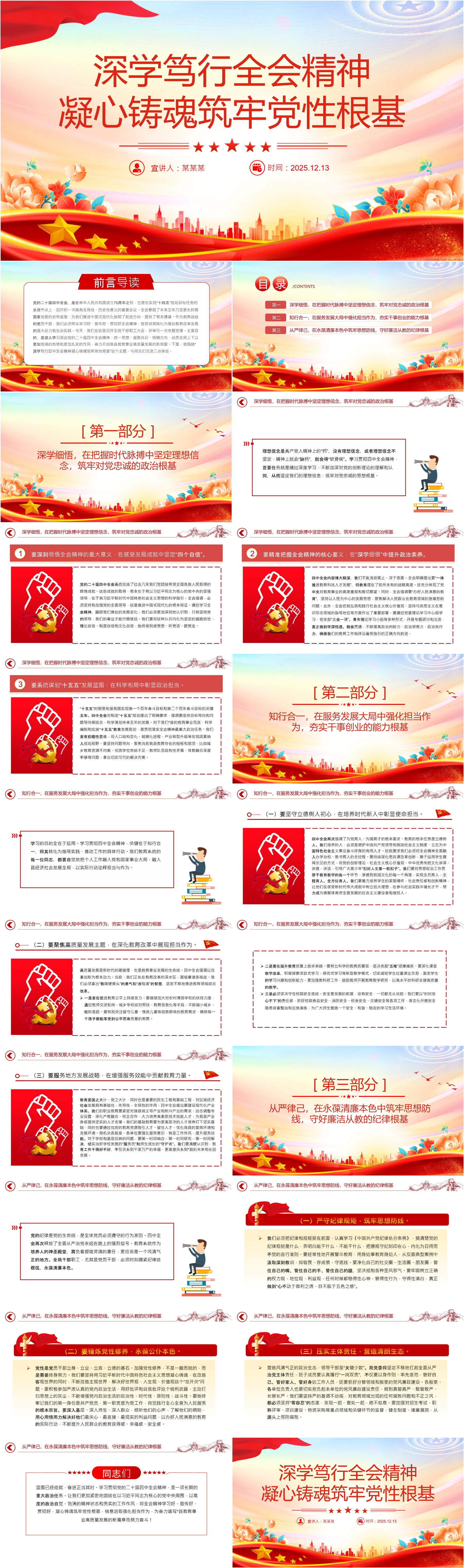 简洁大气深学笃行全会精神凝心铸魂筑牢X性根基PPTX课(ppt+讲稿)