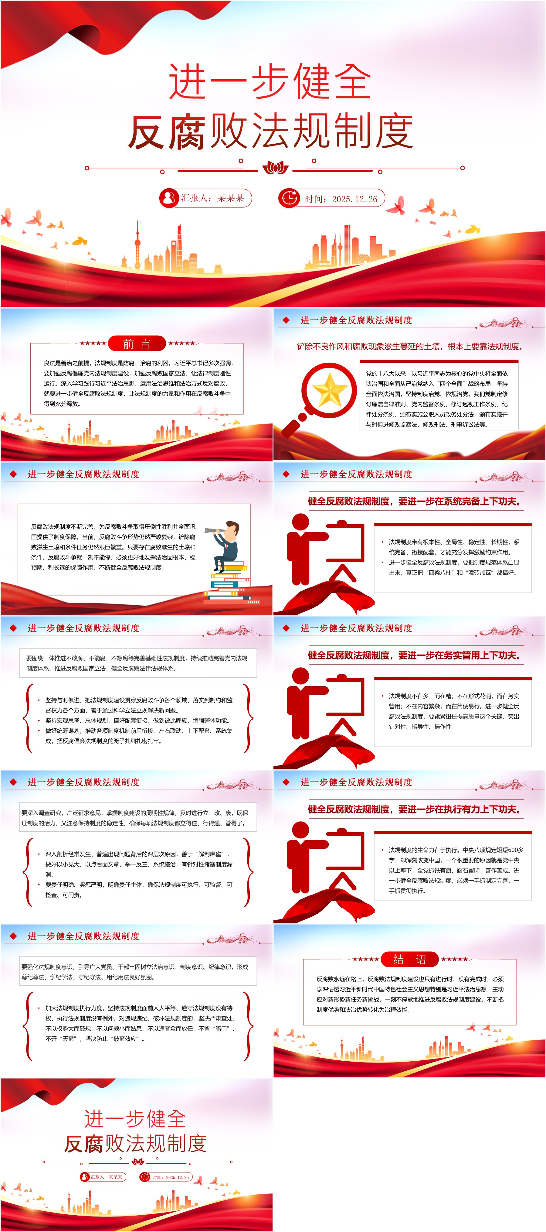 简洁大气进一步健全反腐败法规制度PPT反腐倡廉主题X课(ppt+讲稿)