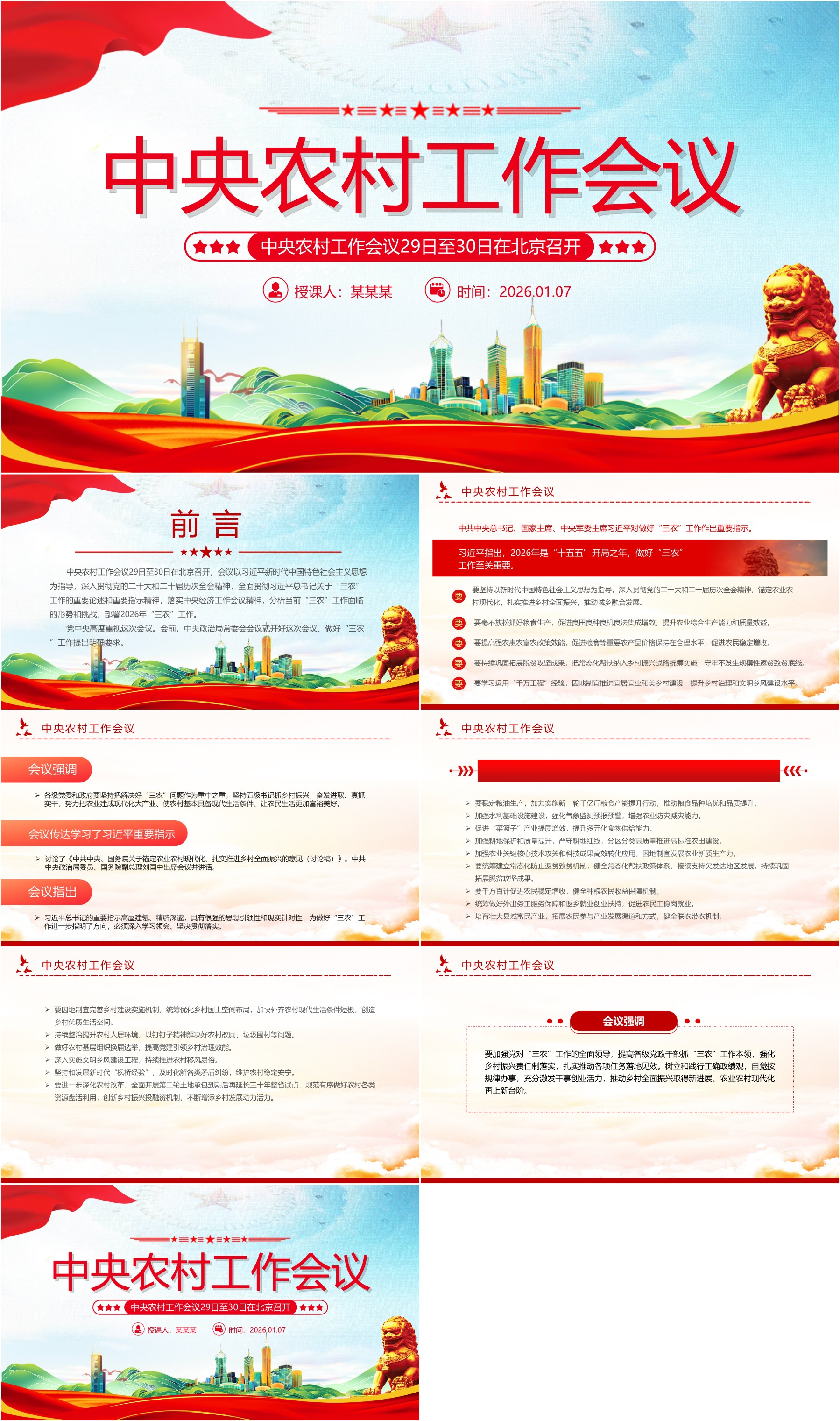 精美大气中央农村工作会议精神重点内容PPT课件