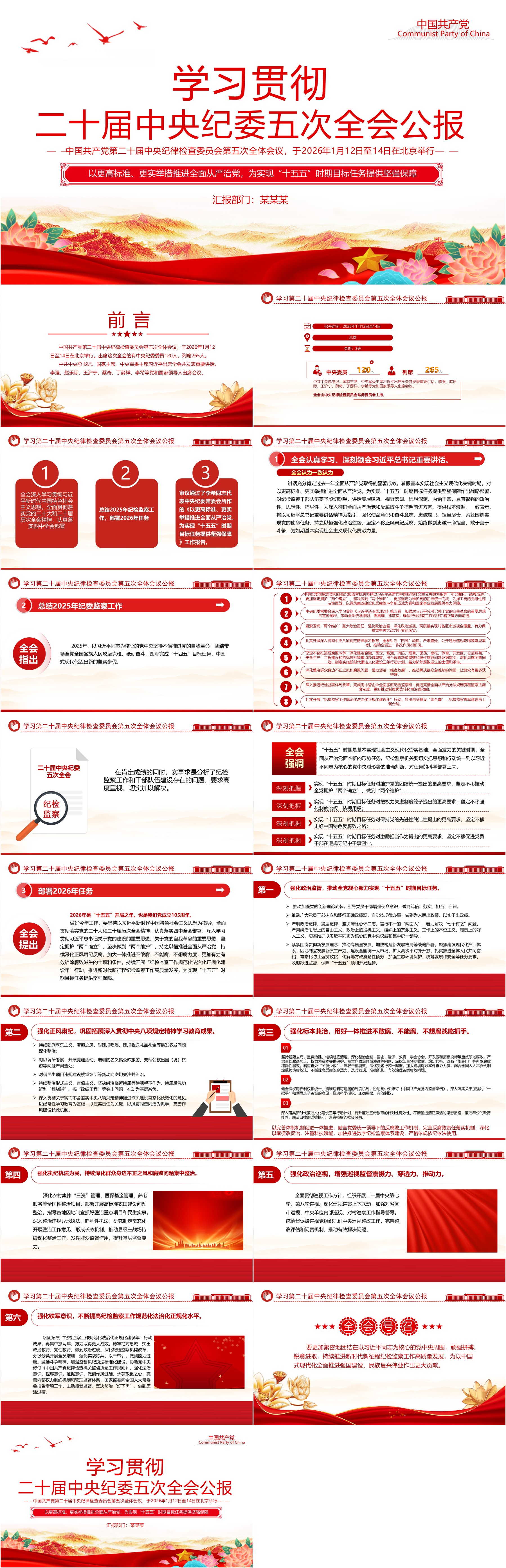 简洁大气二十届中央纪委五次全会公报PPTX课课件