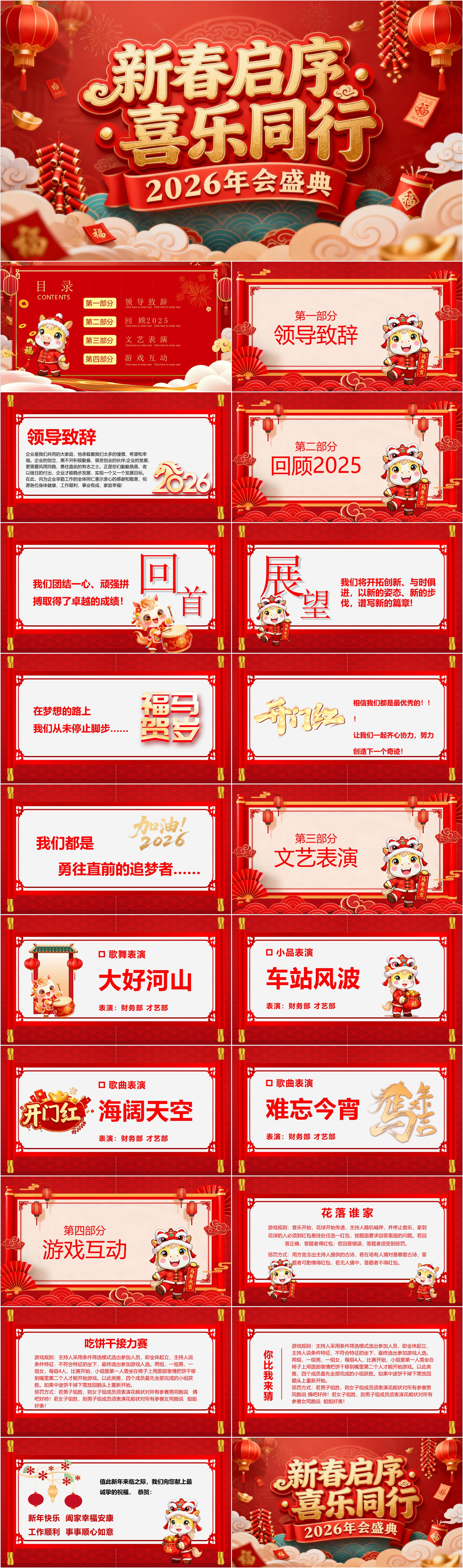 2026年会盛典PPT新春启序喜乐同行公司年会茶话会模板下载