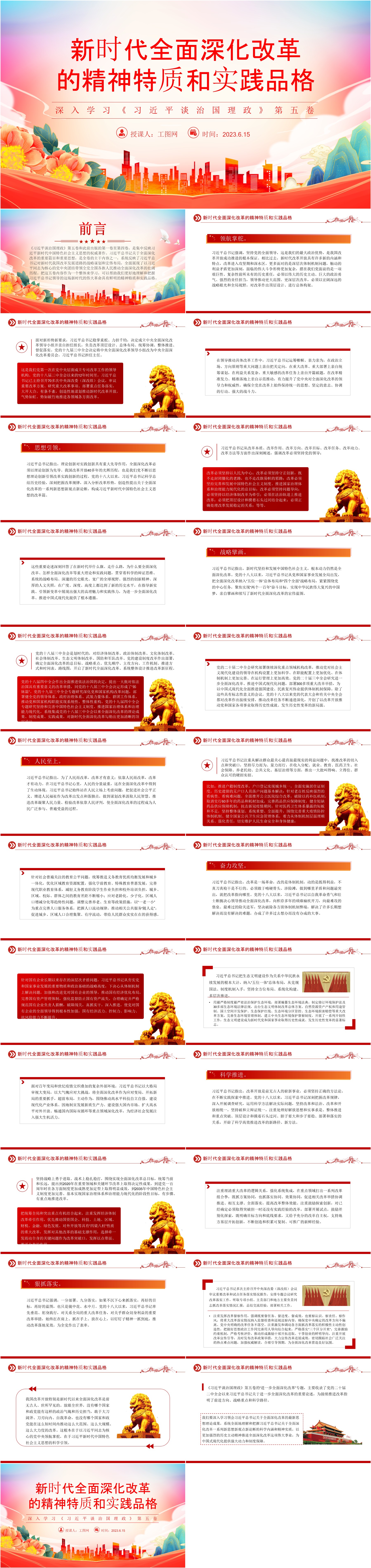精美大气新时代全面深化改革的精神特质和实践品格PPT《谈治国理政》第五卷课件(ppt+讲稿)