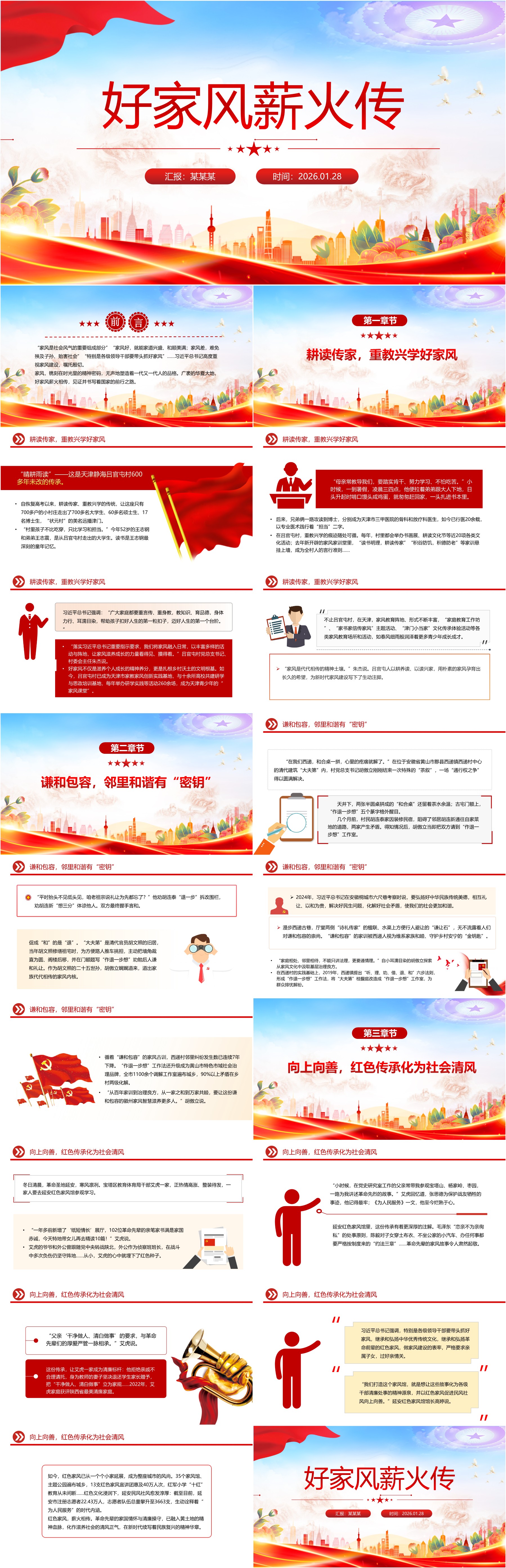 简洁大气好家风薪火传PPT家风建设主题X课课件(ppt+讲稿)