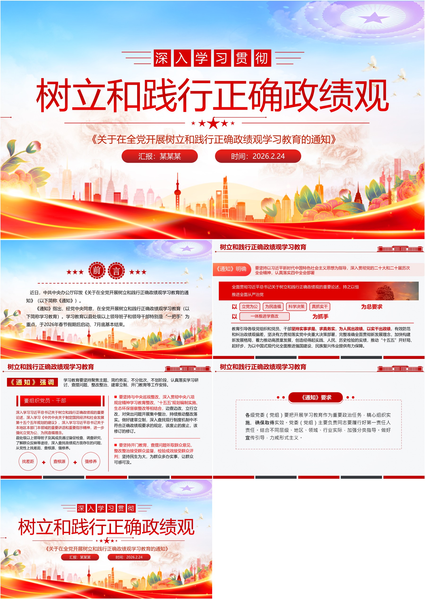 《关于在全X开展树立和践行正确政绩观学习教育的通知》PPTX课下载(ppt+讲稿)