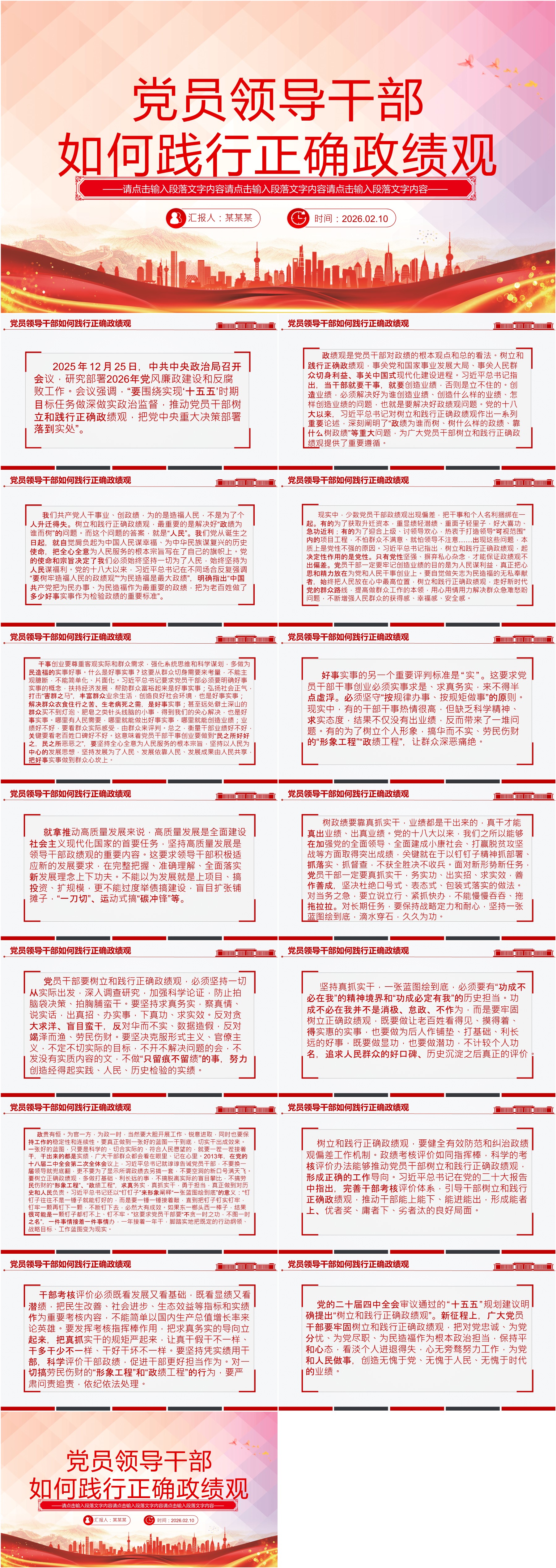 大气精美X员领导干部如何践行正确政绩观PPTX课课件(ppt+讲稿)
