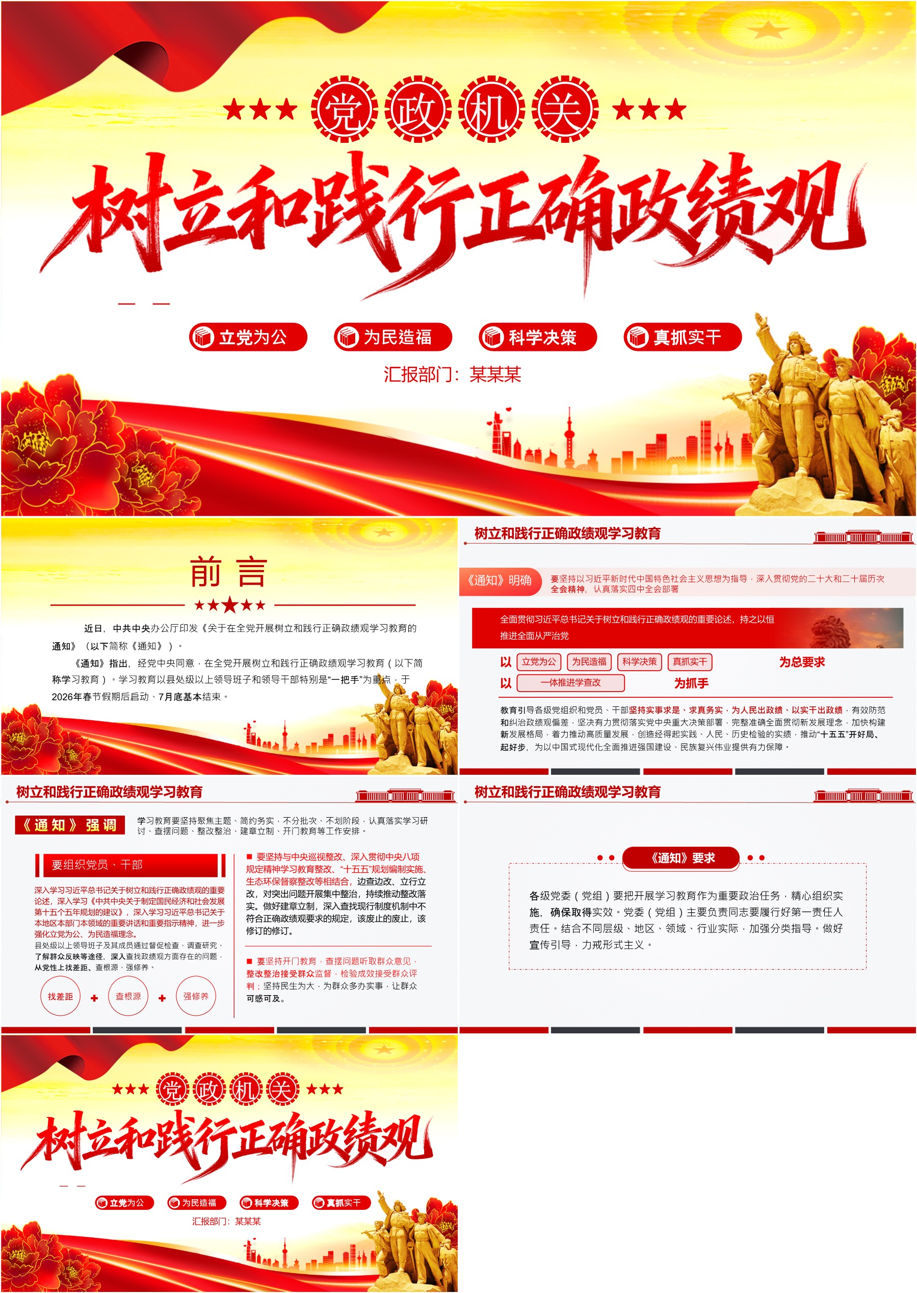 X政风《关于在全X开展树立和践行正确政绩观学习教育的通知》PPTX课课件(ppt+讲稿)