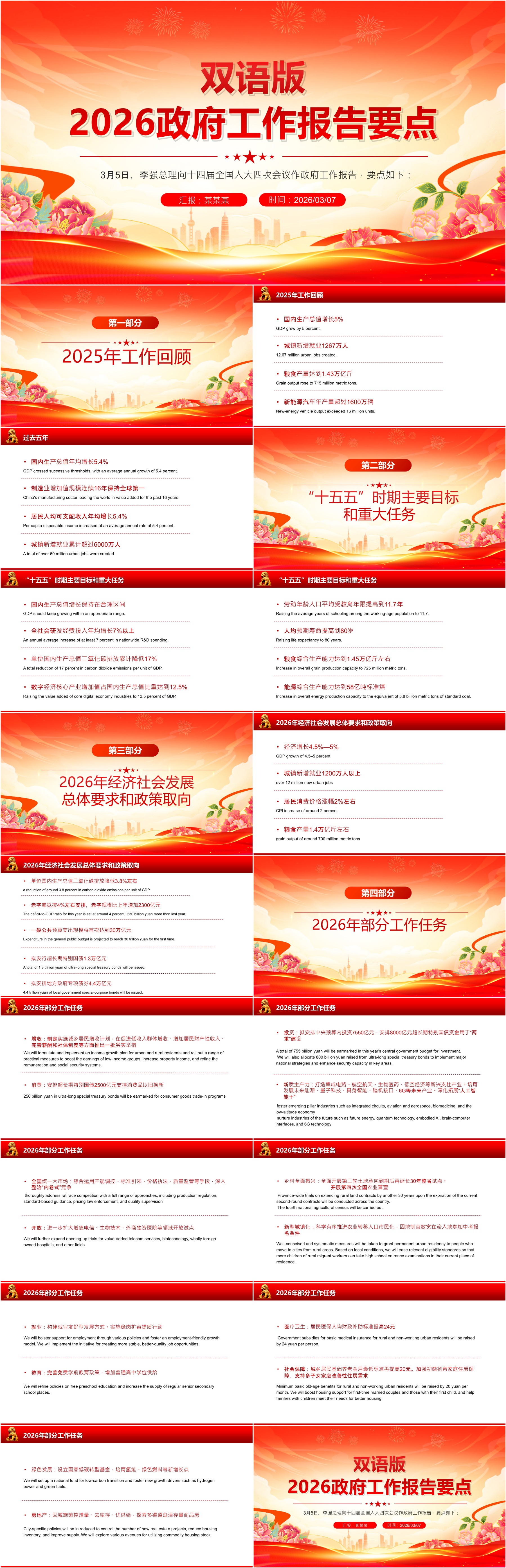 双语速览2026政府工作报告要点PPT两会主题课件(ppt+讲稿)