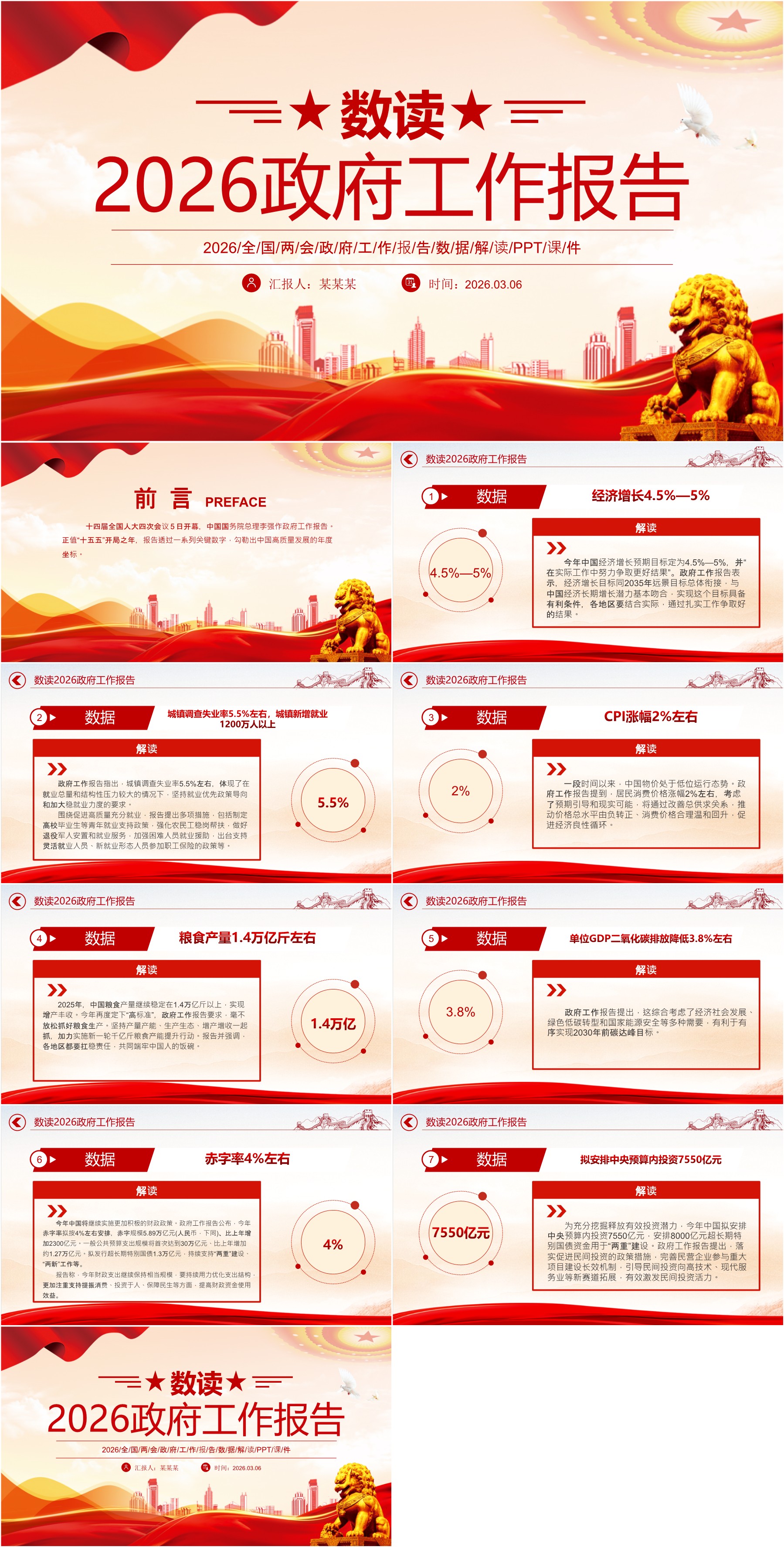 简洁风数读2026政府工作报告PPT学习贯彻两会精神微X课