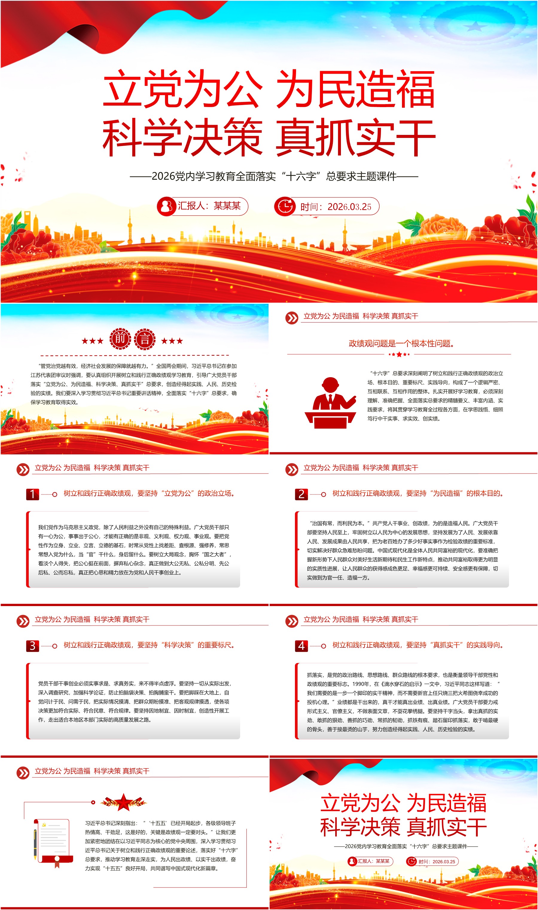 红色精美立X为公 为民造福 科学决策 真抓实干PPT全面落实“十六字”总要求课件