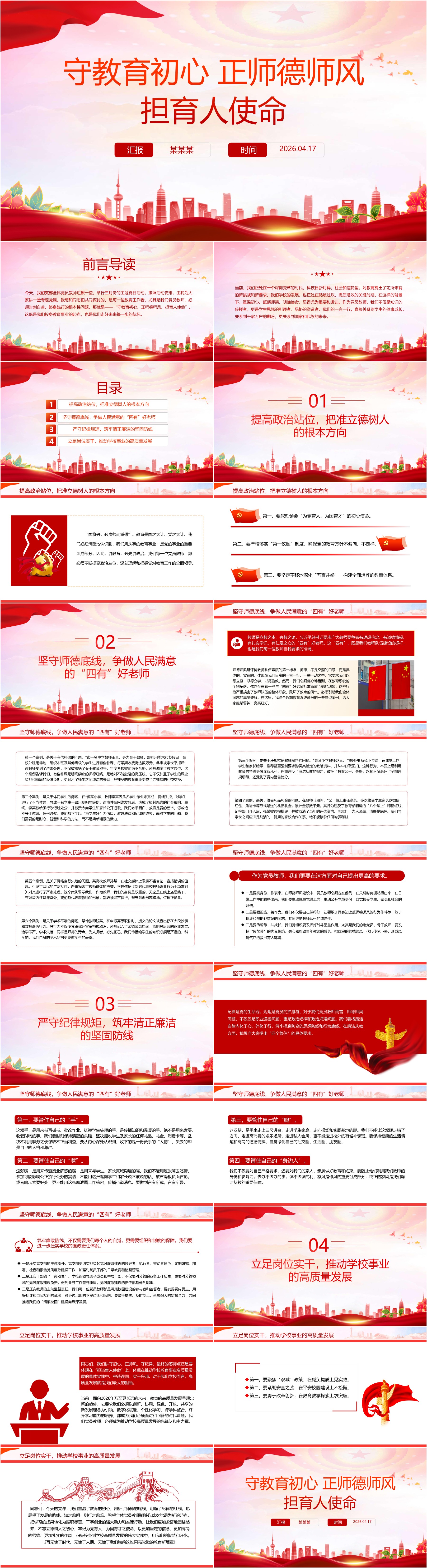 精品教师X课PPT守教育初心正师德师风担育人使命课件下载(ppt+讲稿)