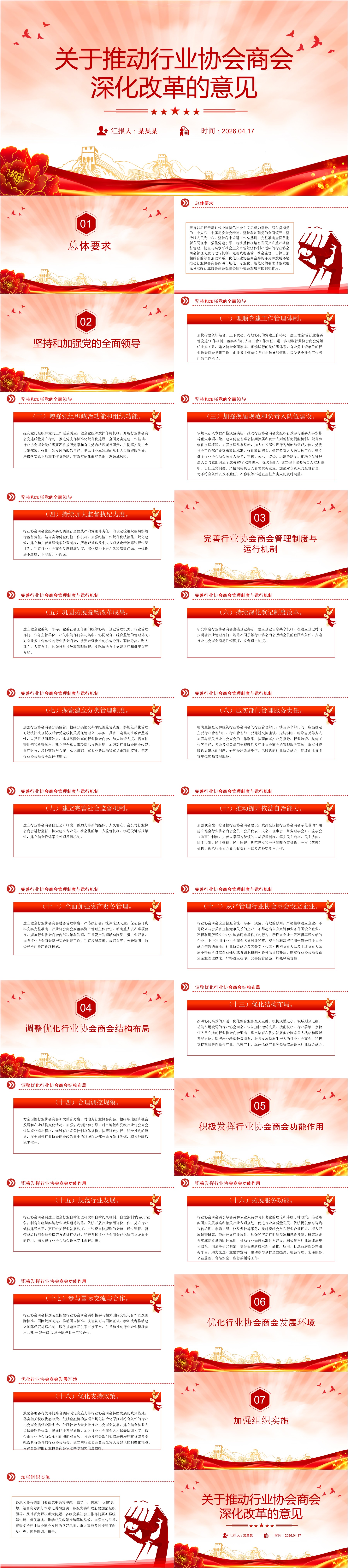 红色精美关于推动行业协会商会深化改革的意见PPT课件(ppt+讲稿)