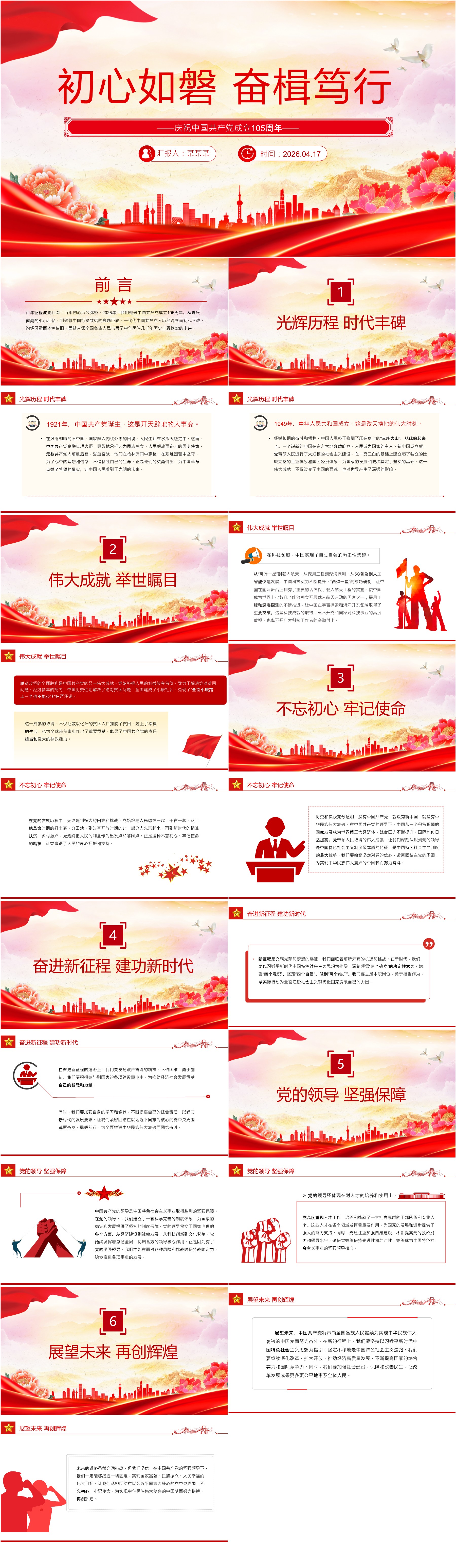 红色精美初心如磐奋楫笃行PPT庆祝中国共产X成立105周年X课(ppt+讲稿)