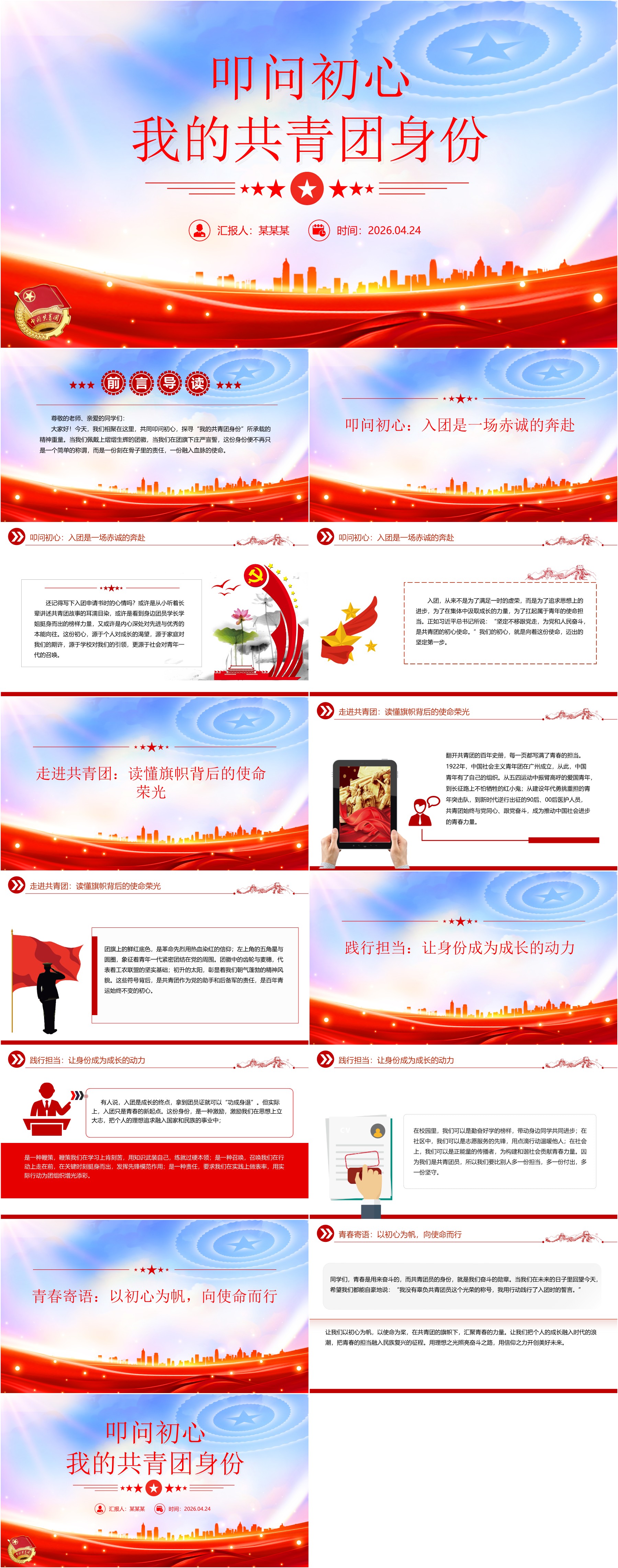 简洁实用叩问初心 我的共青团身份PPT五四青年节主题团课(ppt+讲稿)