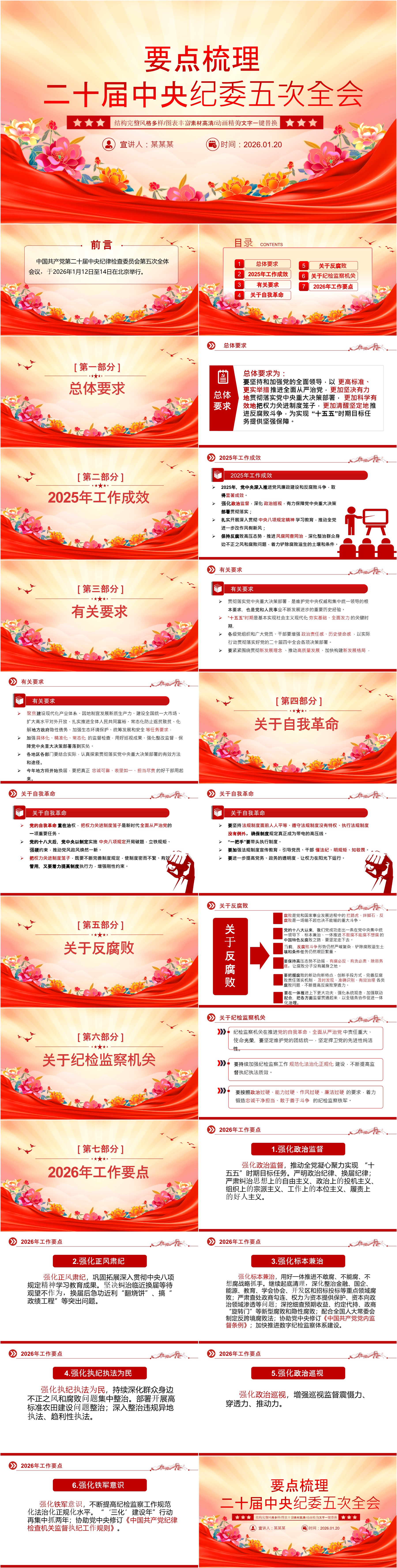 X政风2026年纪检监察工作六大任务PPT二十届中央纪委五次全会X课(ppt+讲稿)