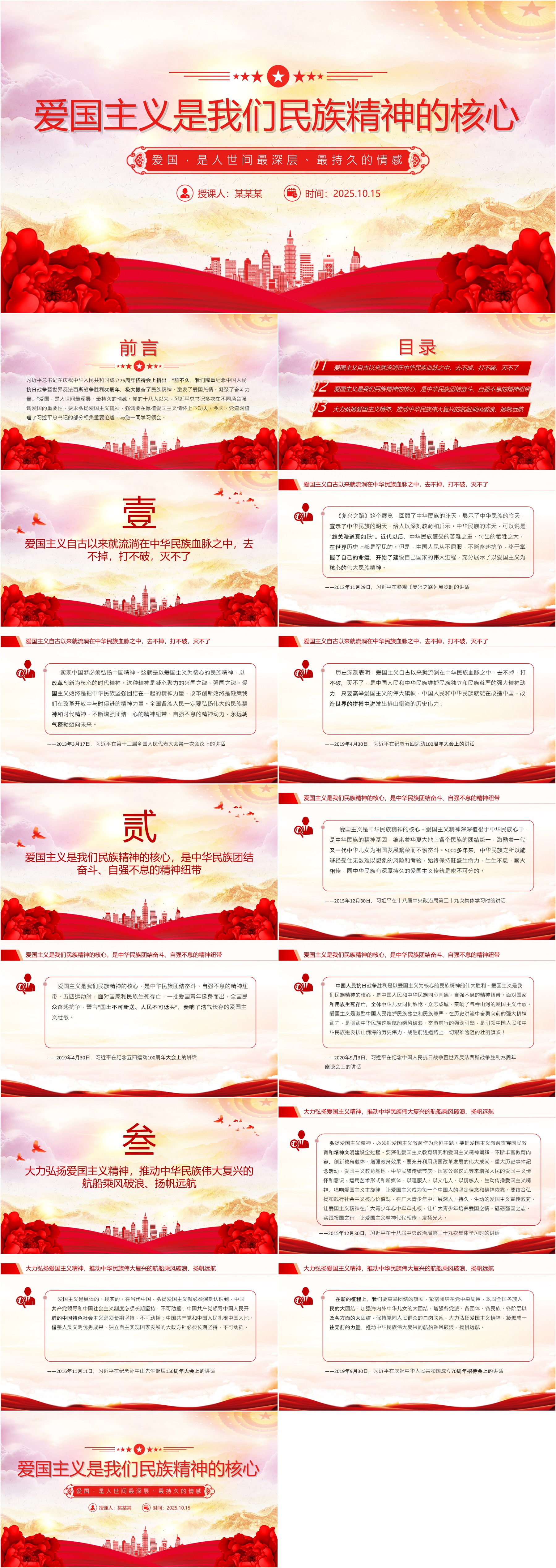 X建风爱国主义是我们民族精神的核心PPT总书记重要论述课件