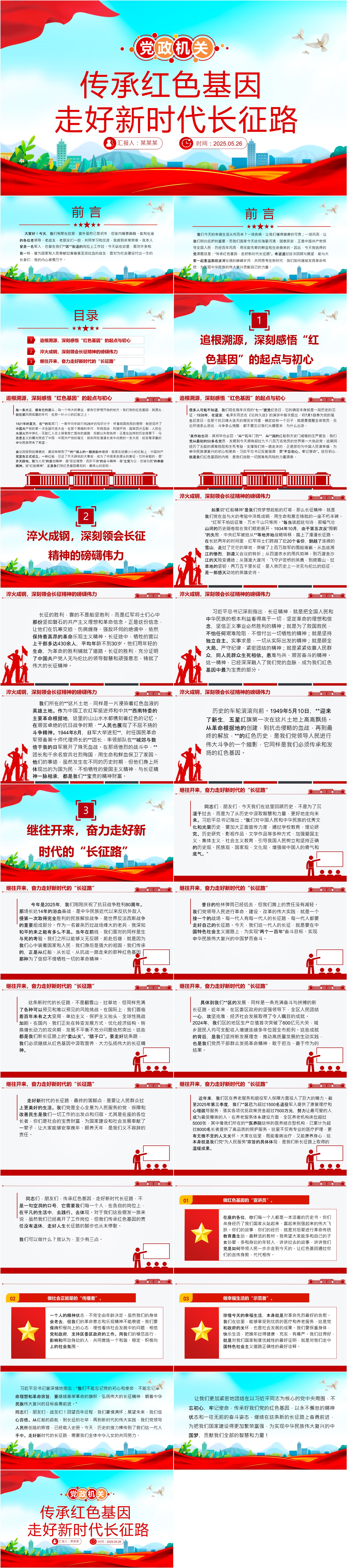 简洁大气传承红色基因走好新时代长征路PPTX课课件(ppt+讲稿)