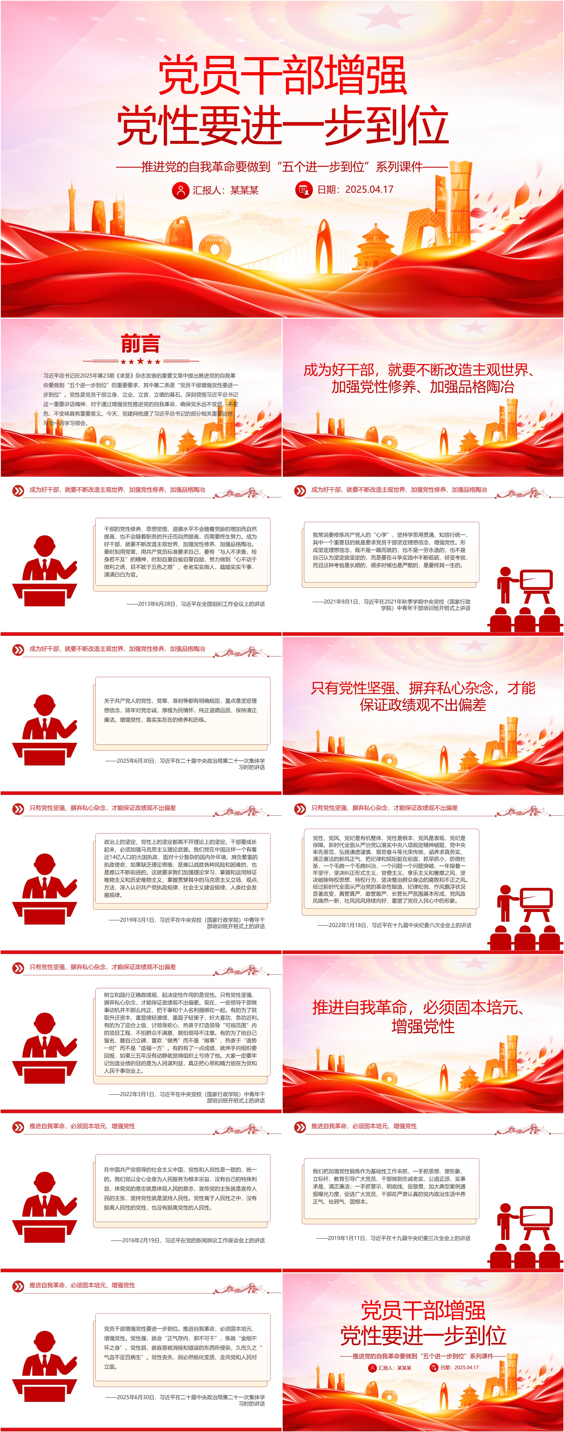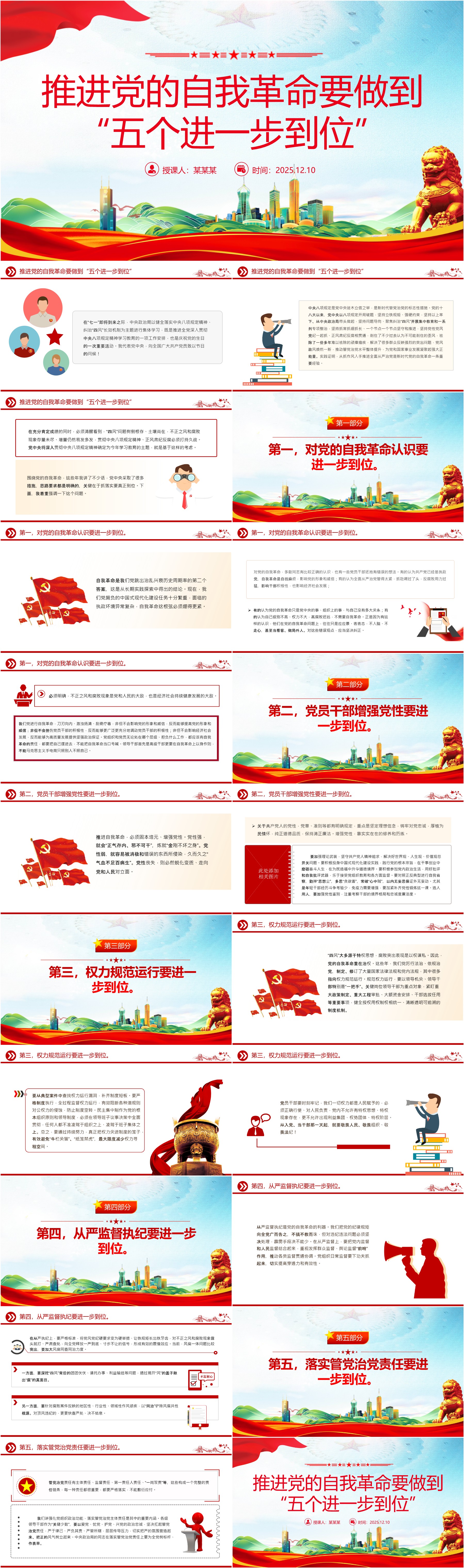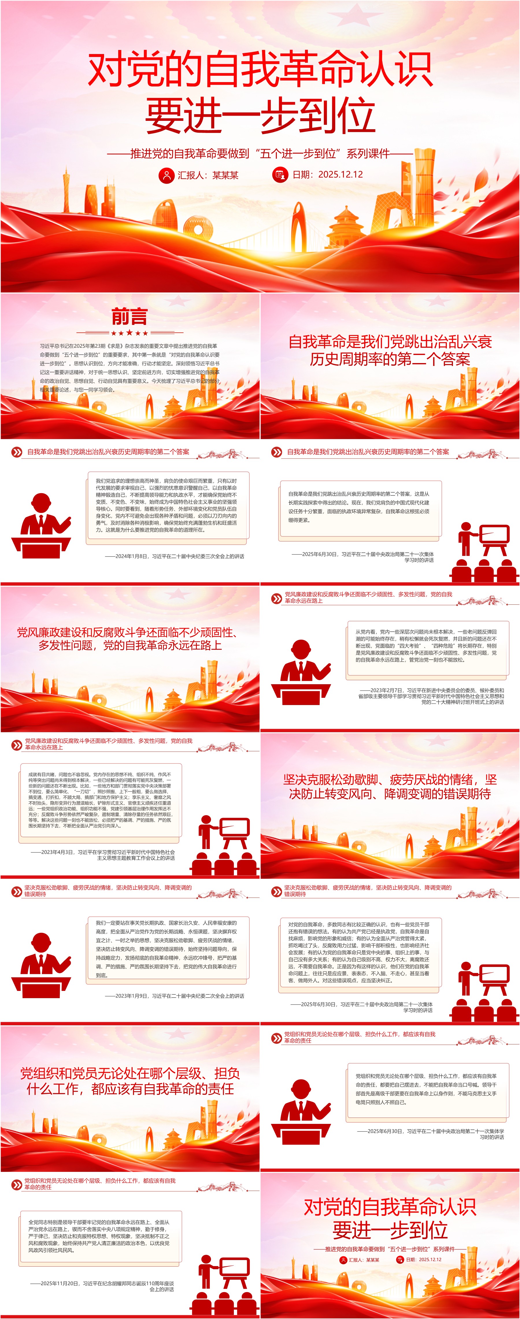 红色大气推进X的自我革命要做到“五个进一步到位”PPT课件(ppt+讲稿)