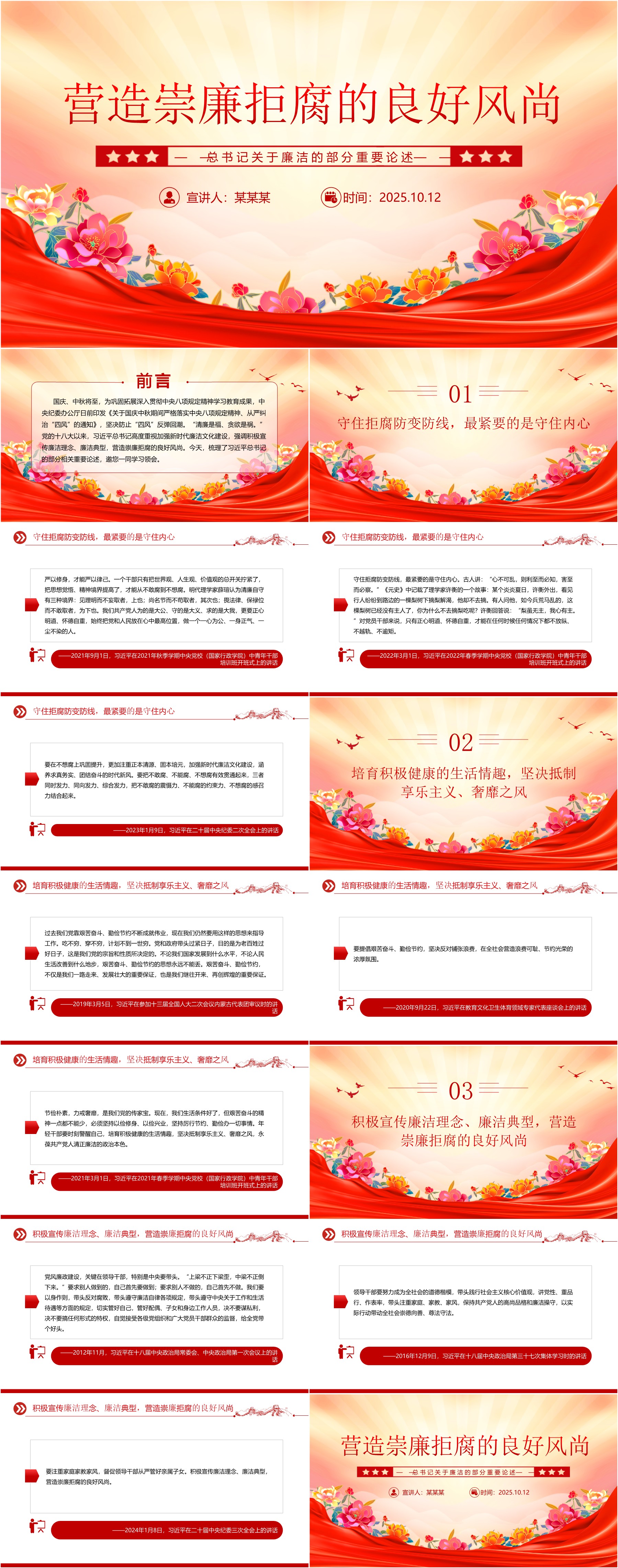 红色简洁营造崇廉拒腐的良好风尚PPT总书记重要论述X课课件(ppt+讲稿)