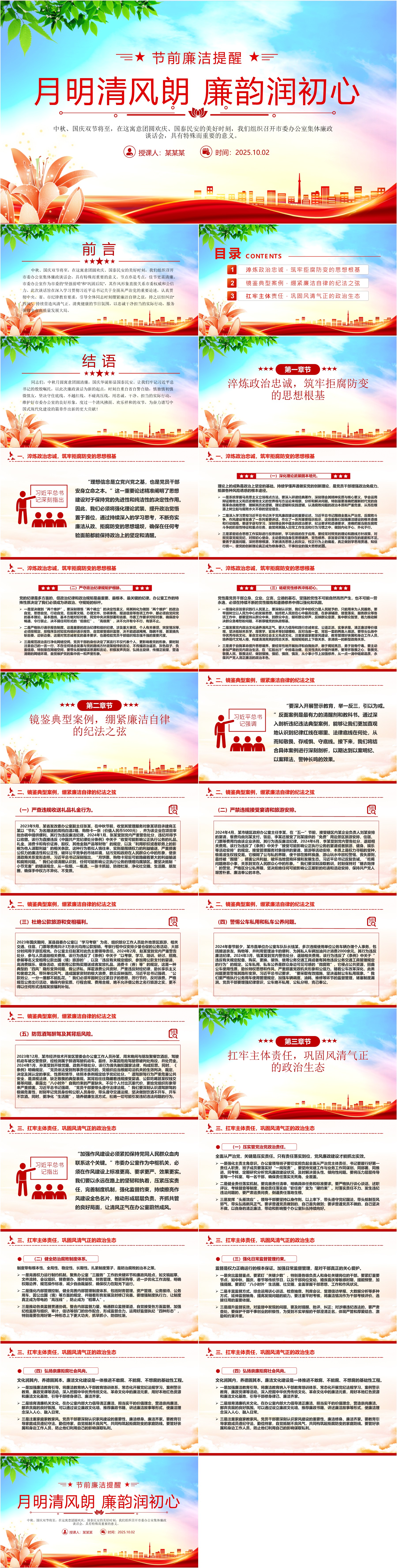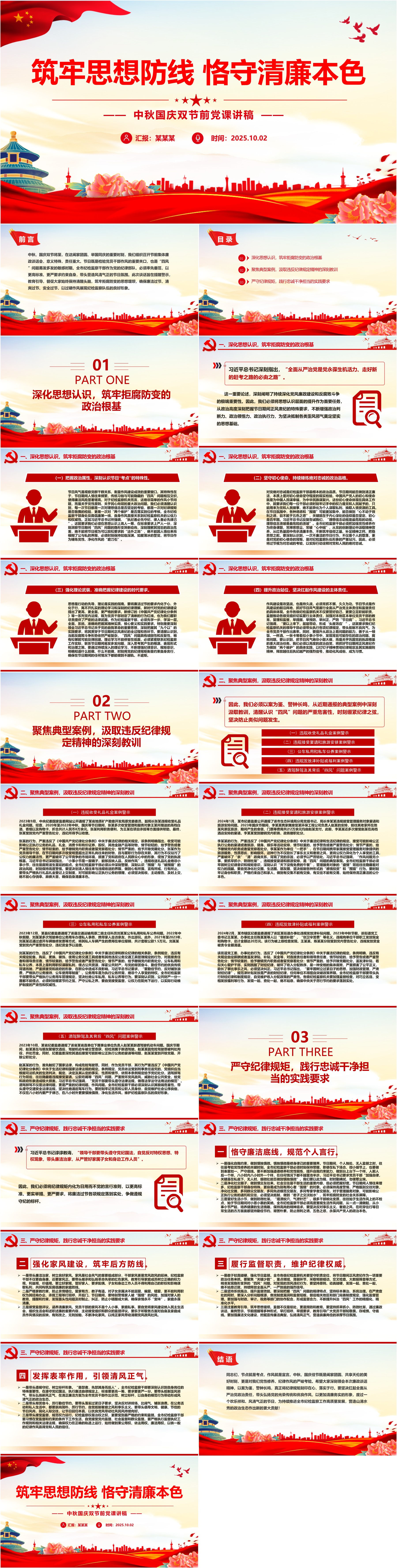 中秋国庆双节前X课PPT筑牢思想防线恪守清廉本色课件(ppt+讲稿)