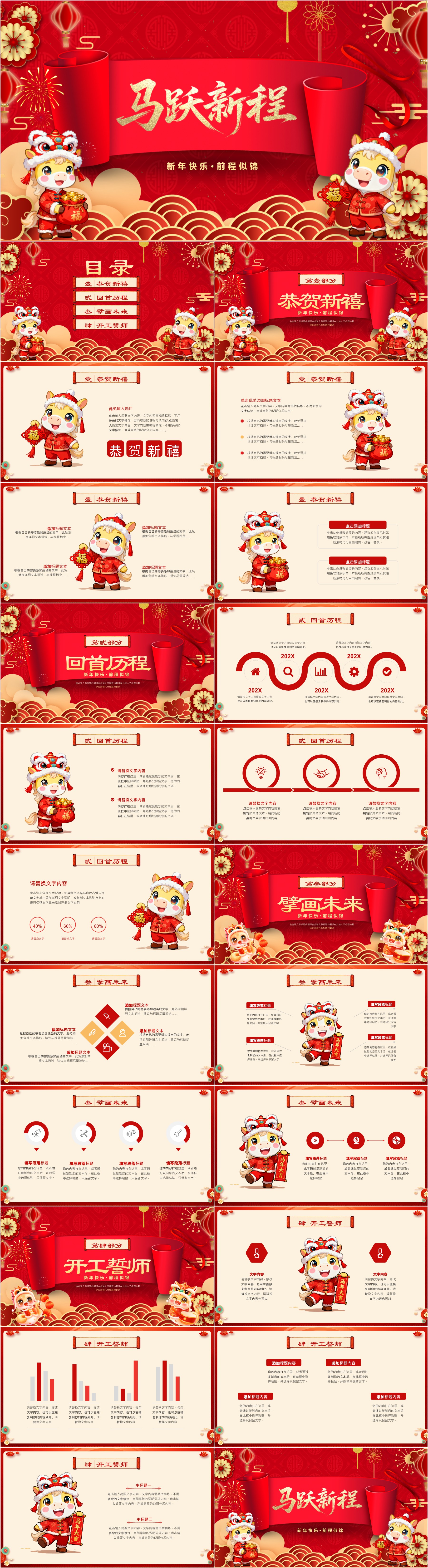 马跃新程PPT红色喜庆马年公司年会新年联欢会模板下载
