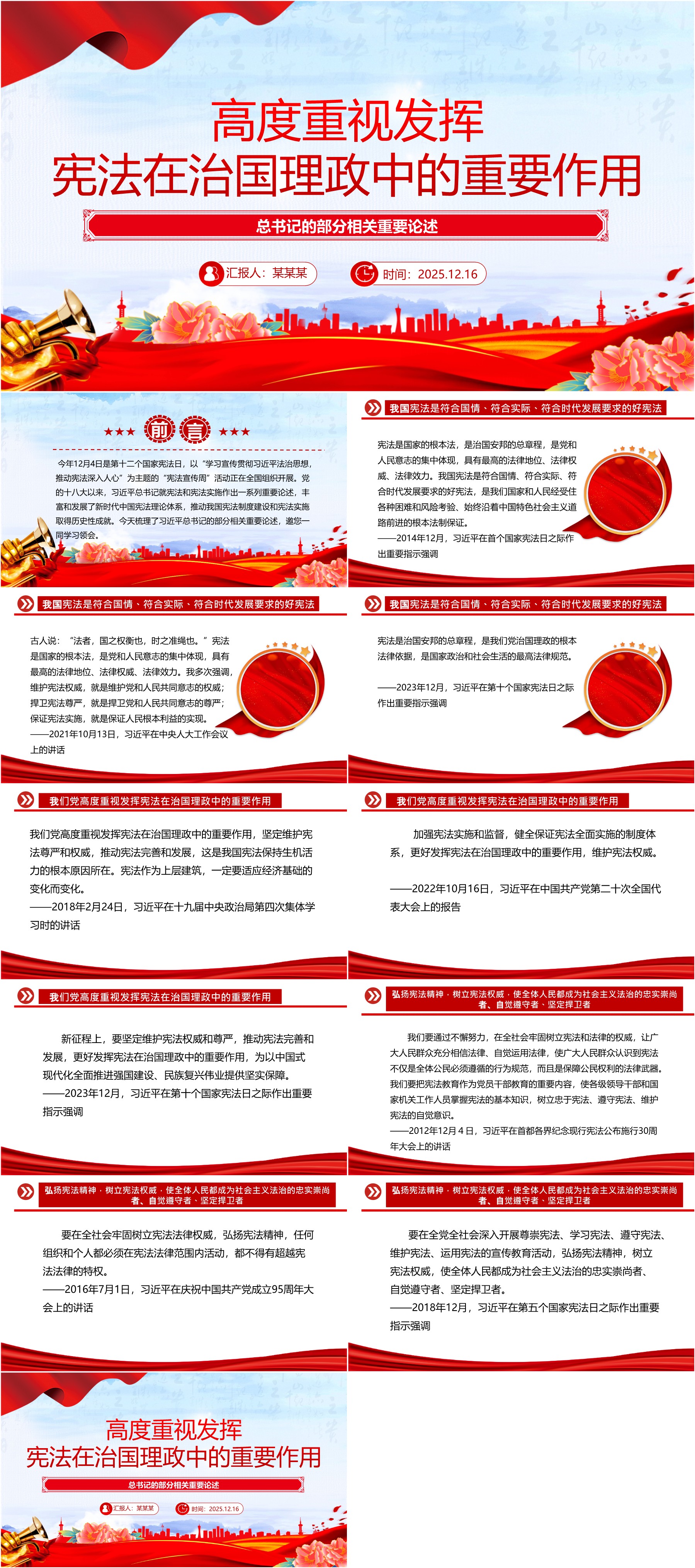 红色精美高度重视发挥宪法在治国理政中的重要作用PPT总书记重要论述(ppt+讲稿)
