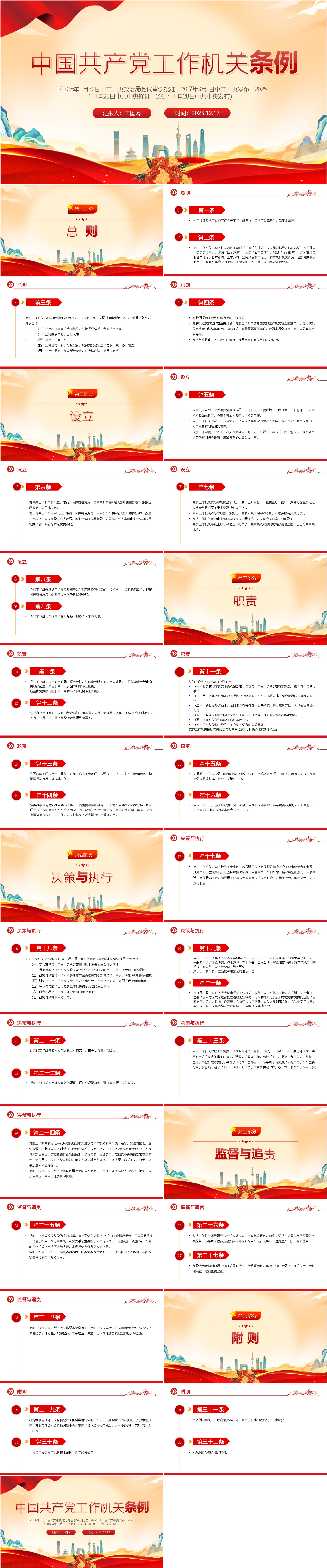 红色精美《中国共产X工作机关条例》PPTX课下载(ppt+讲稿)