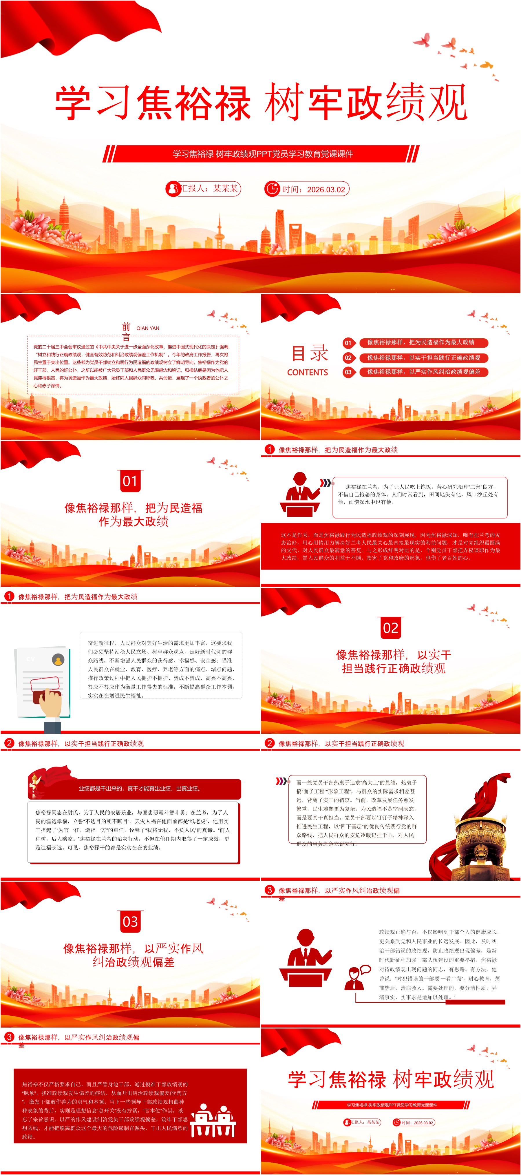 X政风学习焦裕禄 树牢政绩观PPTX员学习教育X课课件(ppt+讲稿)