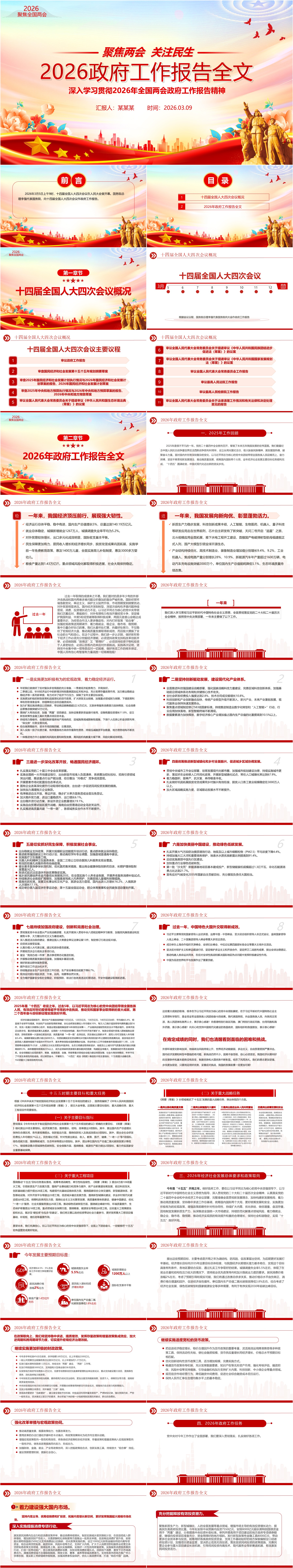 政府工作报告全文PPT2026聚焦两会关注民生主题X课下载(ppt+讲稿)