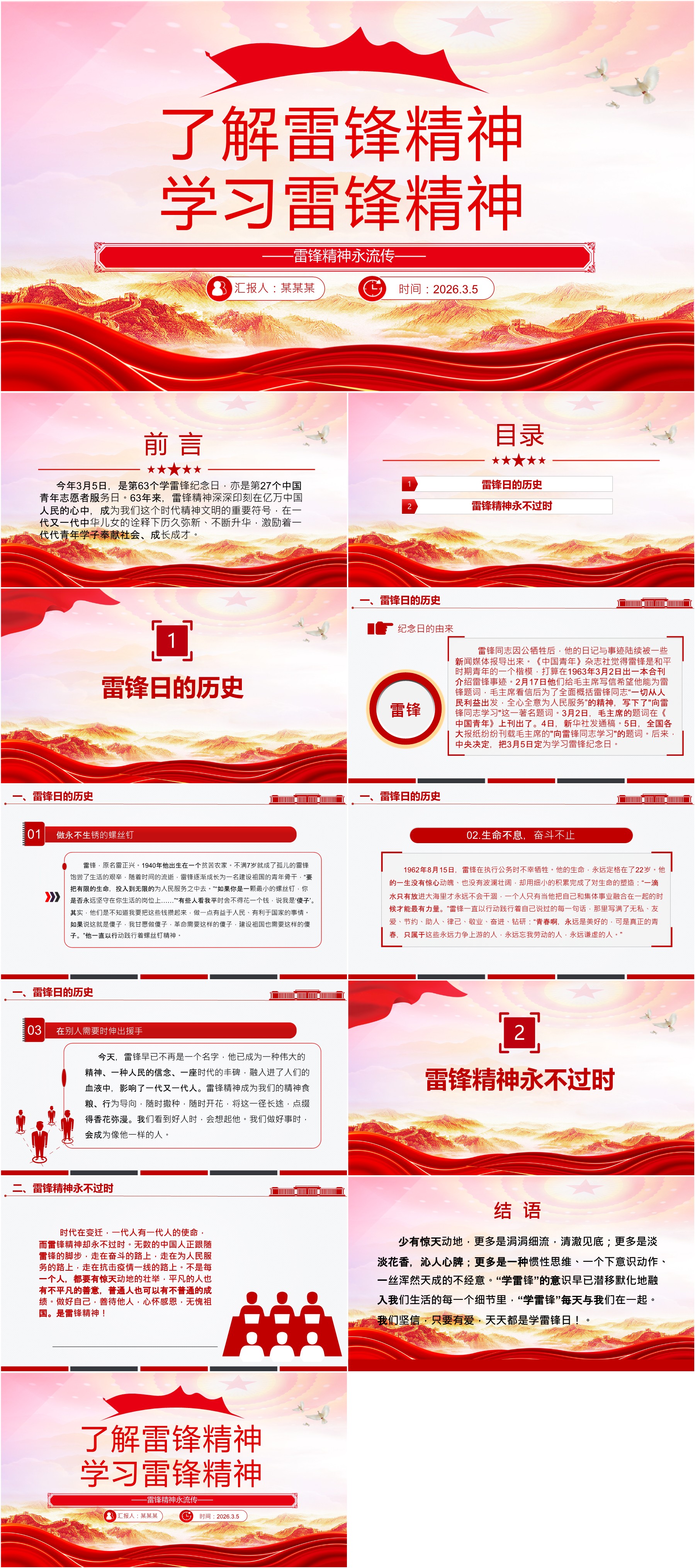 红色精美了解雷锋精神学习雷锋精神PPT3.5学雷锋纪念日课件(ppt+讲稿)