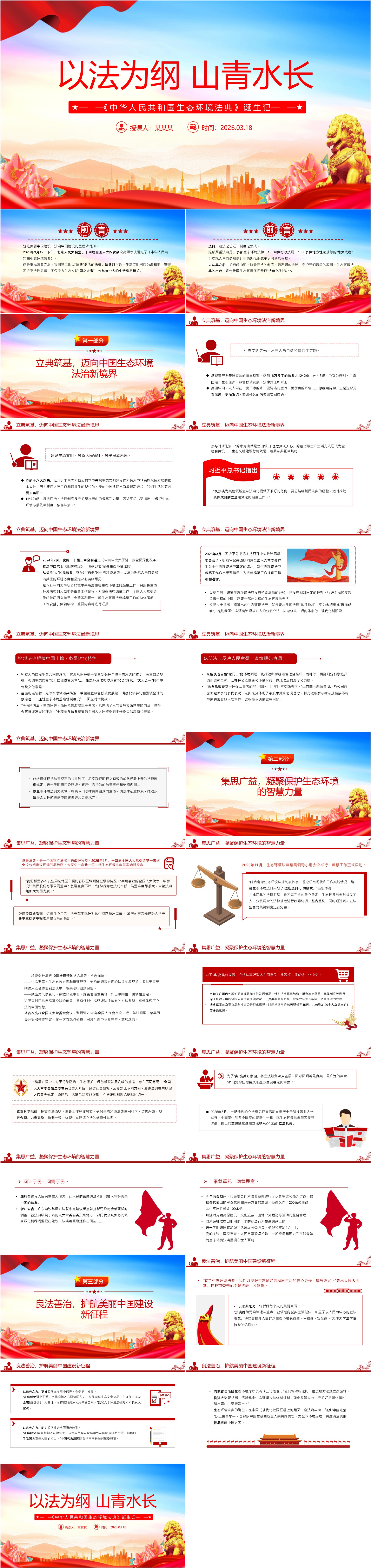 《中华人民共和国生态环境法典》诞生记PPT以法为纲山青水长课件(ppt+讲稿)