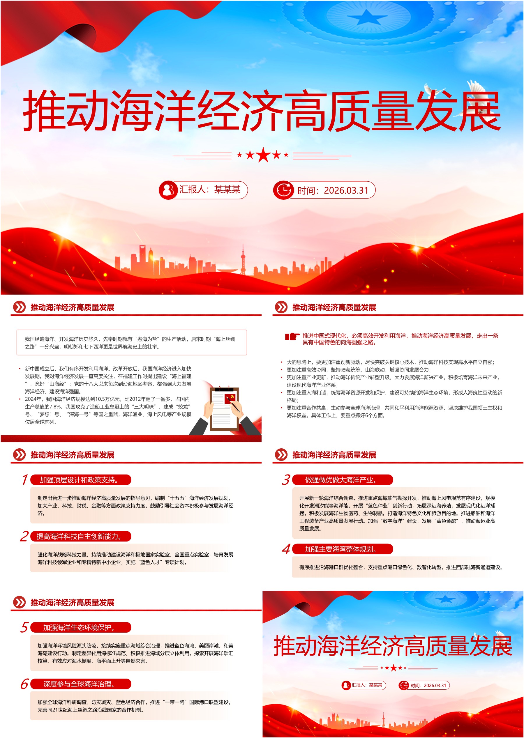 简洁风推动海洋经济高质量发展PPT总书记重要讲话课件